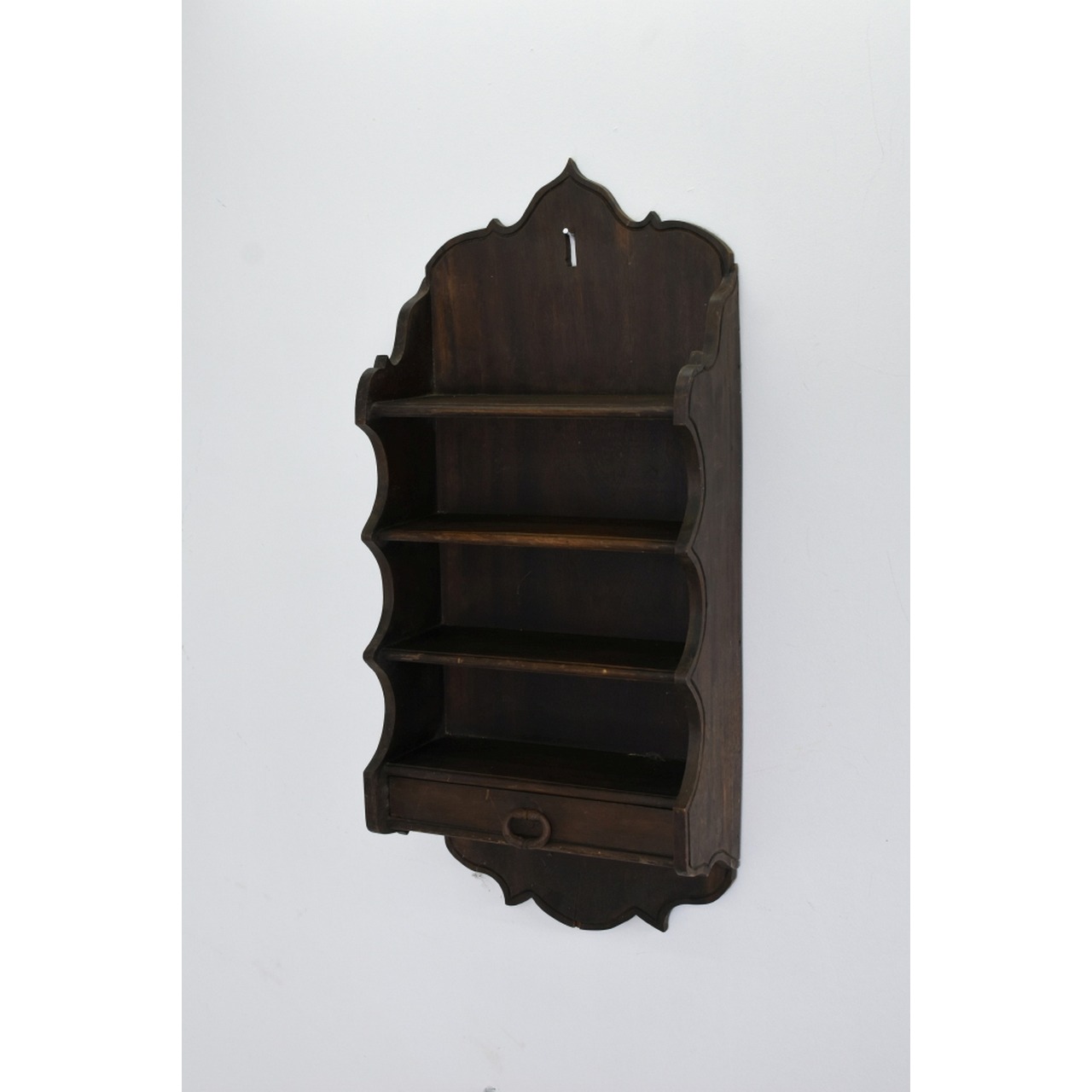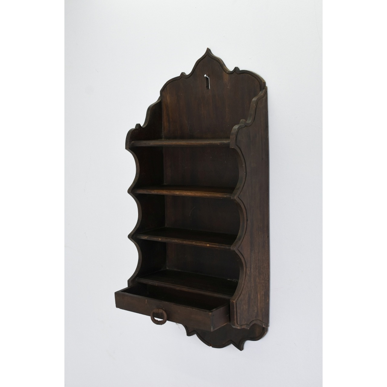Escaparate Antigo em madeira nobre escurecida, 4 prateleiras e gaveta na parte de baixo