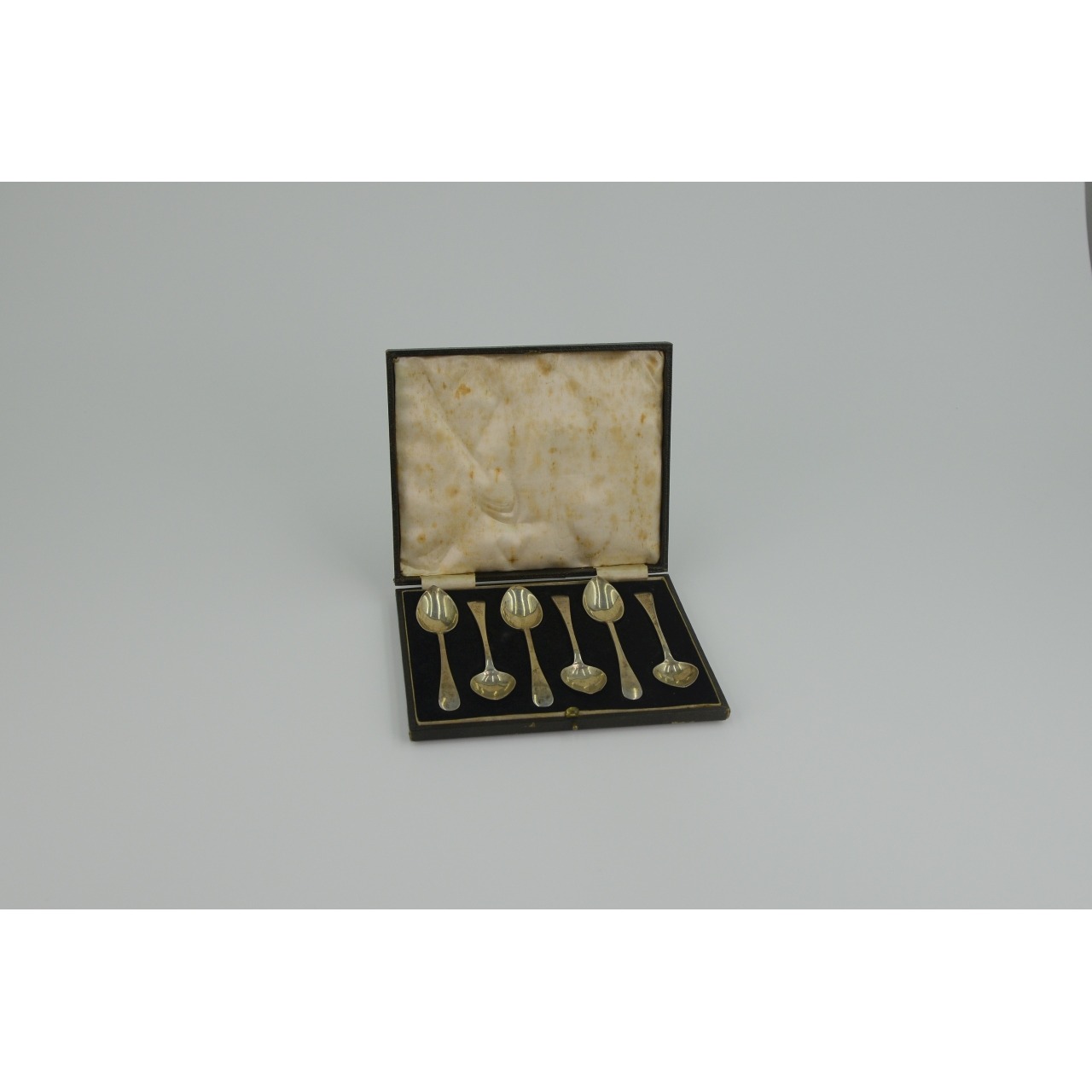 6 colheres de sobremesa em prata e respectiva caixa