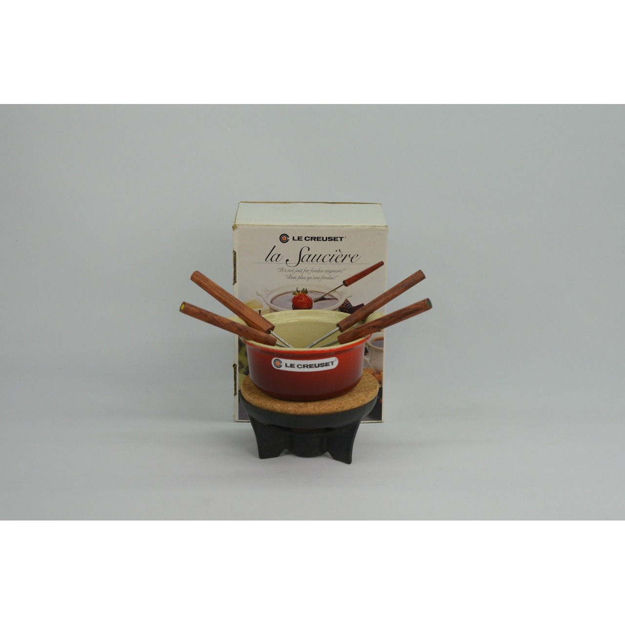 Panela vintage para Fondue em ferro fundido esmaltado. Marca francesa "Le Creuset". Século XX