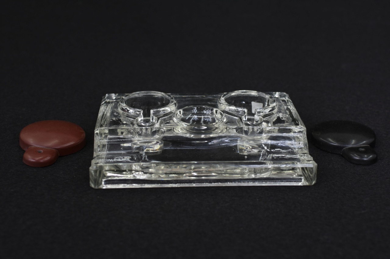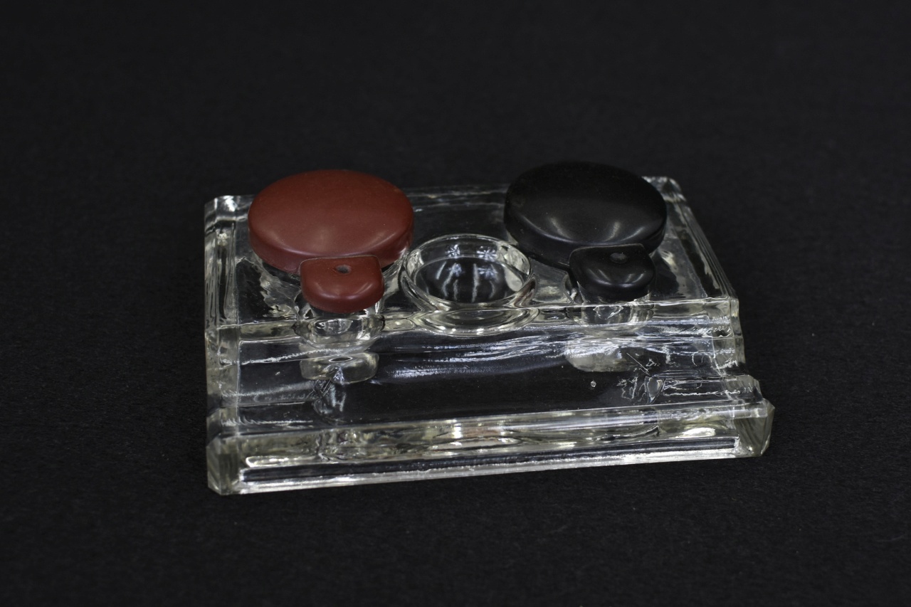 Antigo Tinteiro duplo em vidro, masca "MUS"