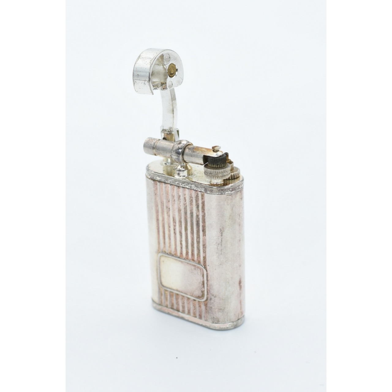 Isqueiro VA em prata esterlina 925, cabeça de águia. Peso: 63,66gr. Apresenta marcas de uso. Falta peça que empurra a pedra. Falta pedra e querosene.