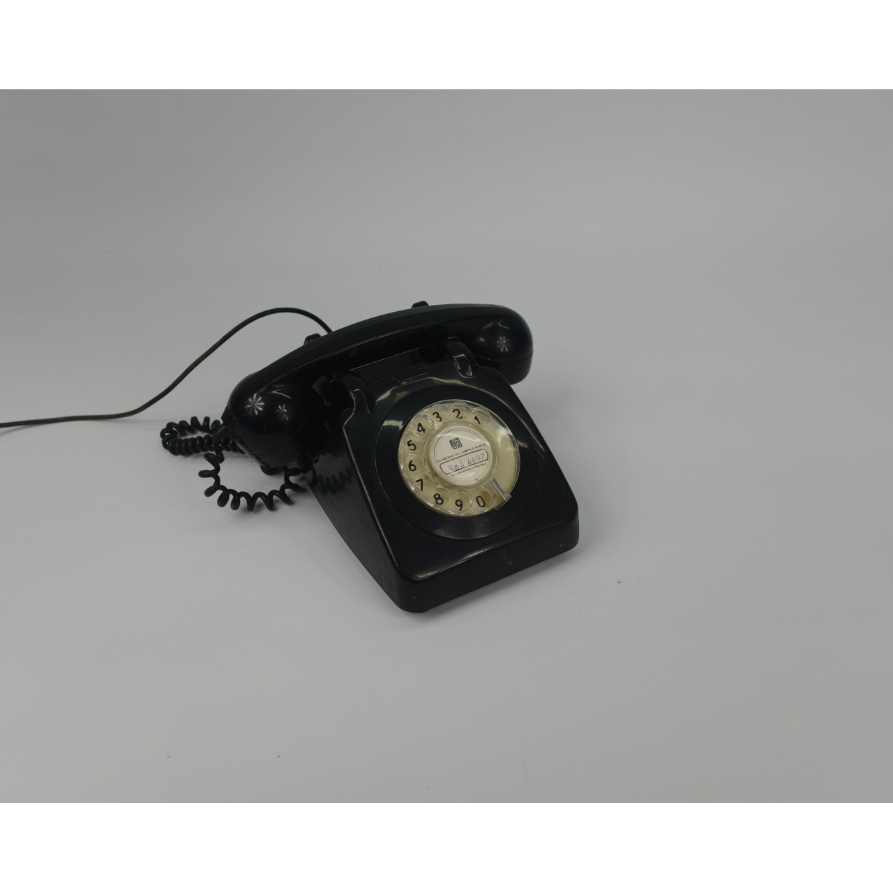 Telefone disco antigo, preto