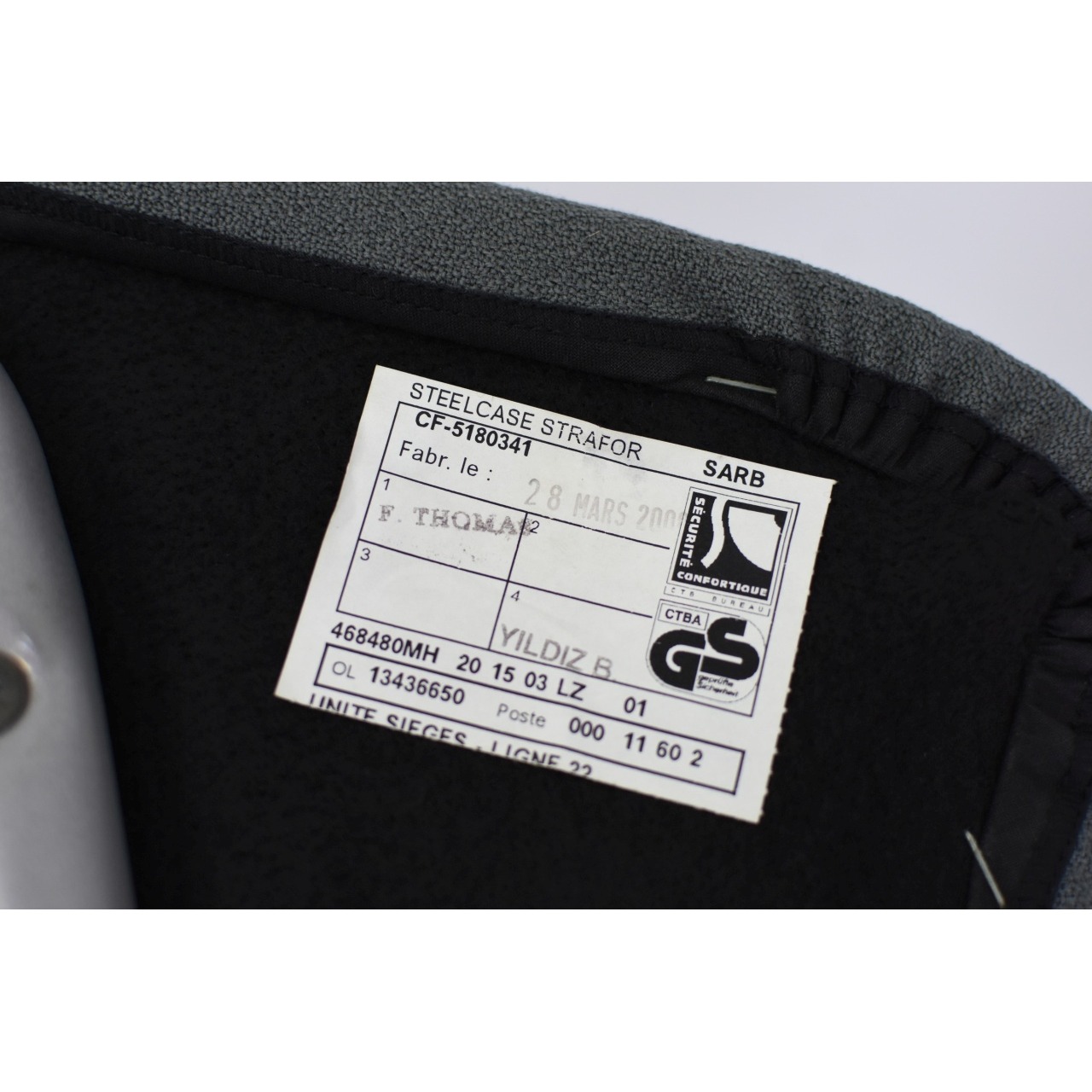 Cadeiras de escritório ( 2 ) em tecido e metal com design, e proteção ambiental marca F.Thomas. Sinais de uso