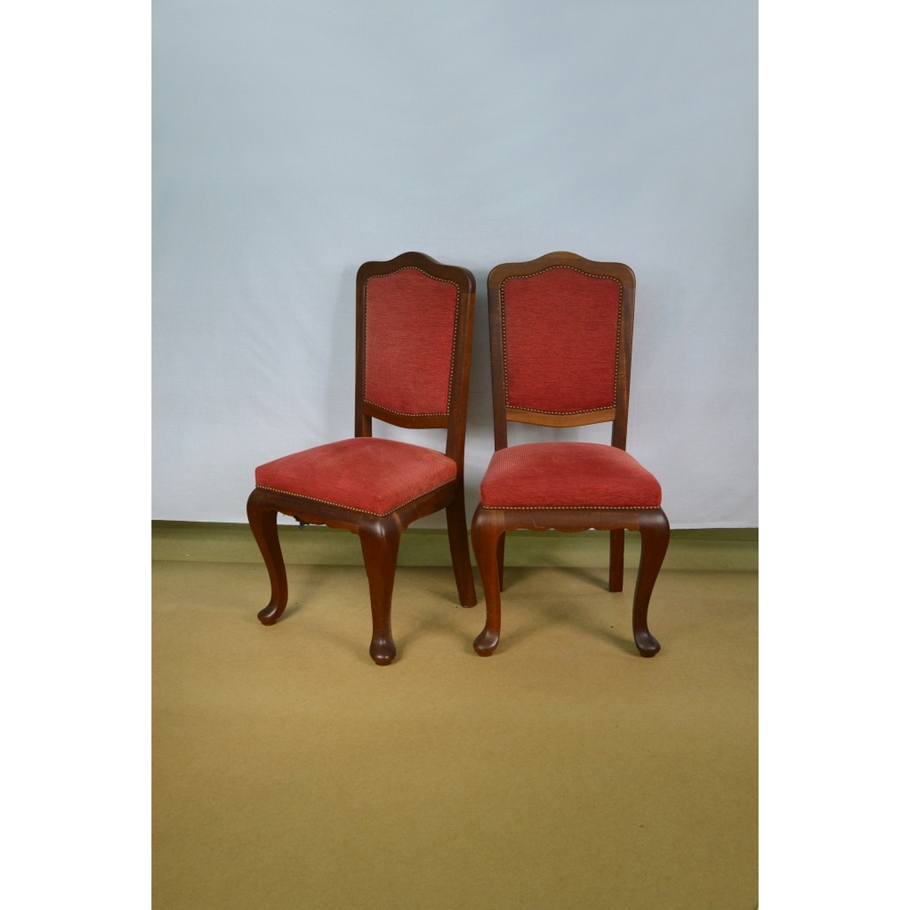 Conjunto de 6 cadeiras em madeira. Assento estofado com tecido aveludado