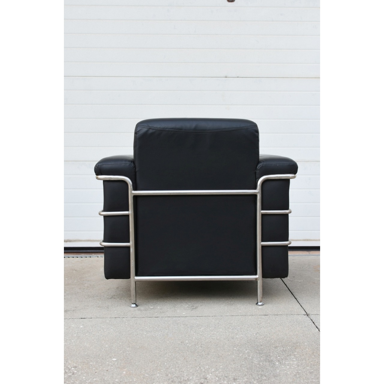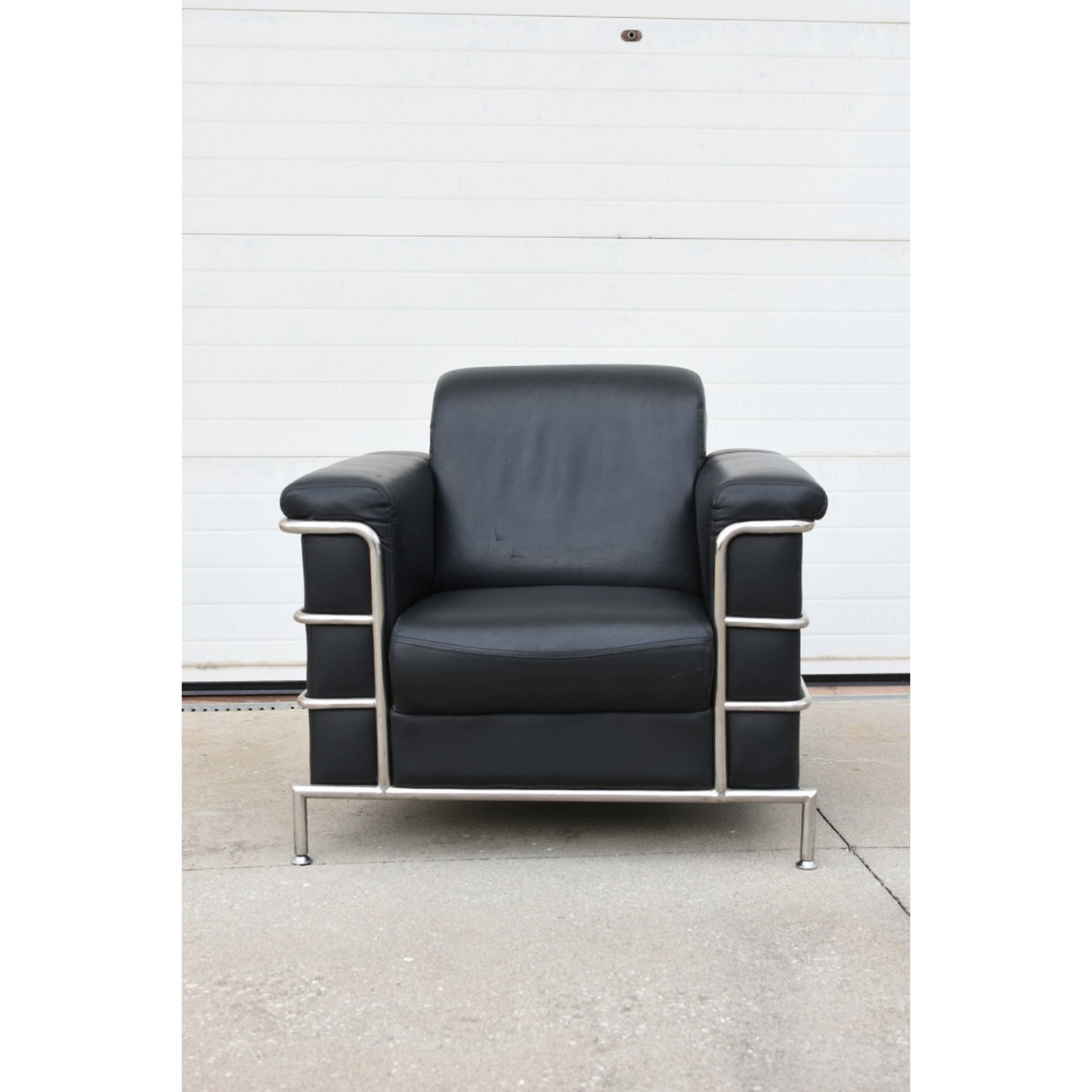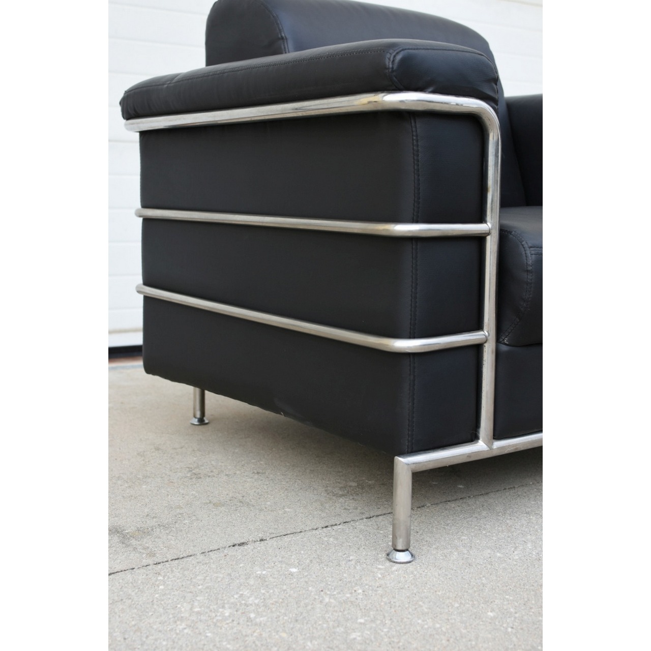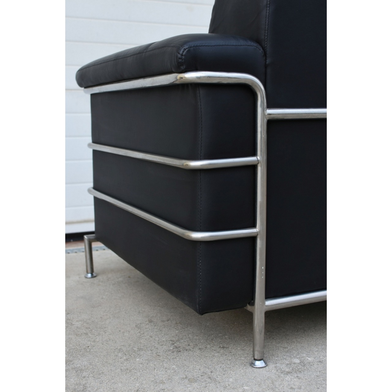 Par de sofás em pele com estrutura em tubagem de aço inox