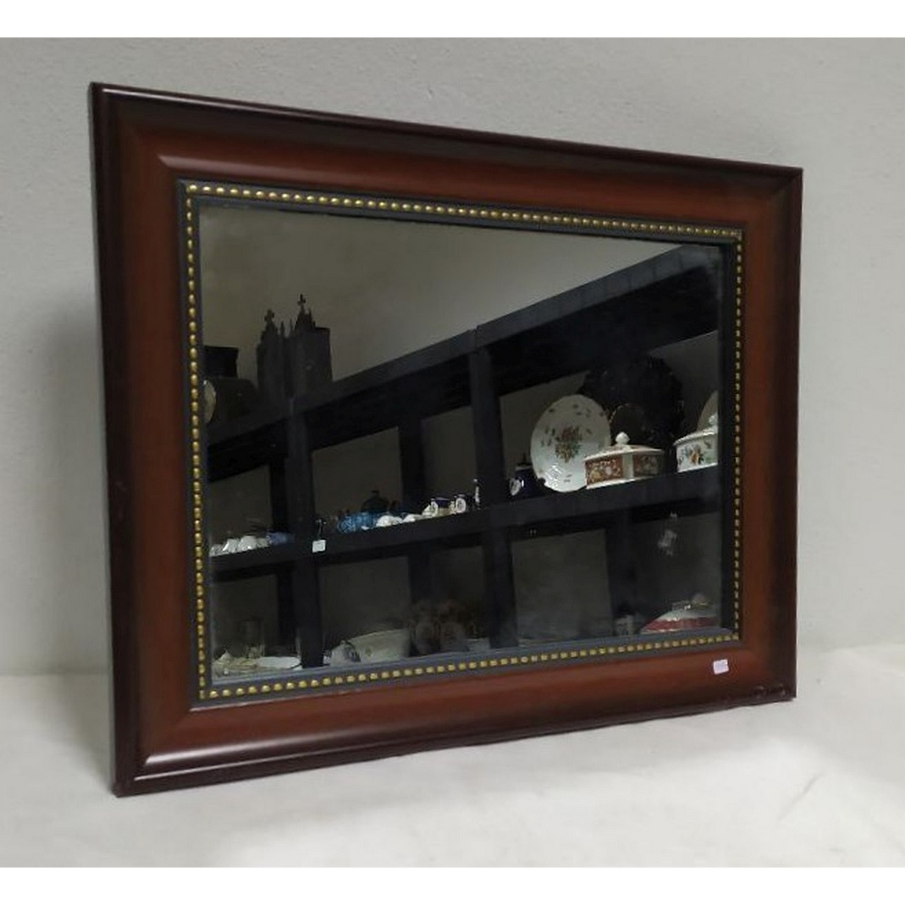 Espelho de parede com moldura em madeira com friso em relevo