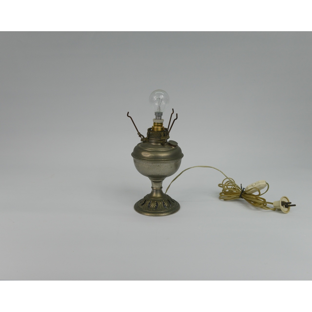 Candeeiro antigo em metal prateado. Electrificado