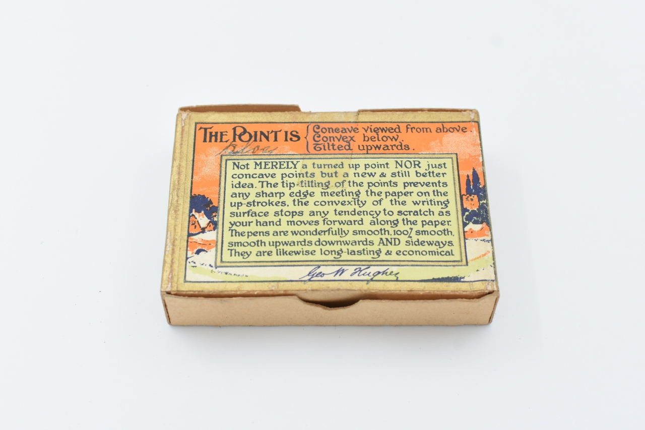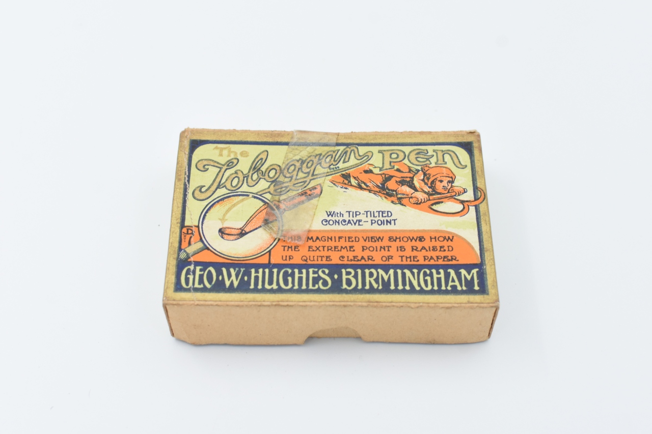 Caixa de aparos Geo. W. Hughes que contém 1 grosa (144 aparos) , do modelo "Toboggan Pen" Nº 0409. Selada