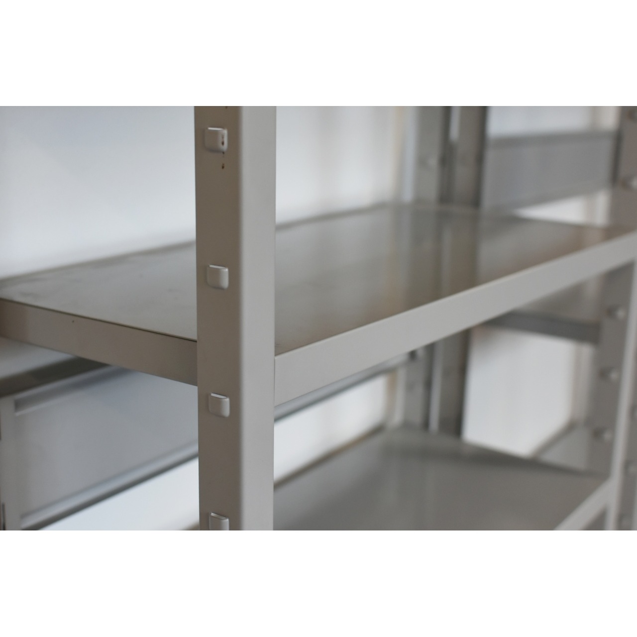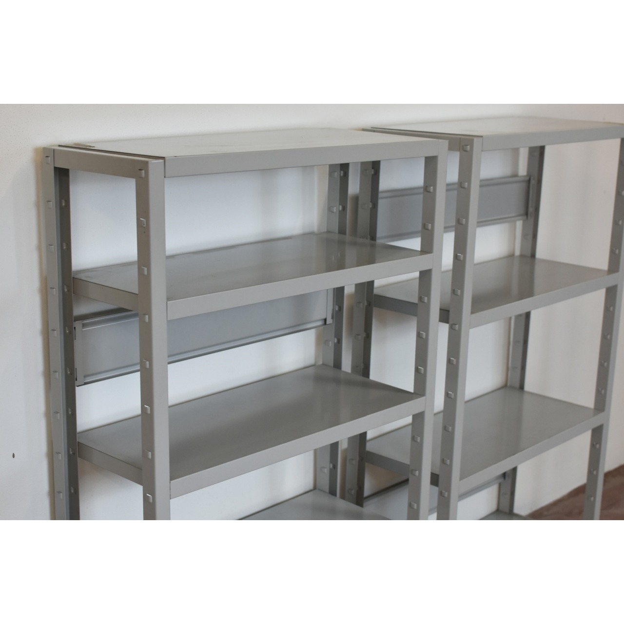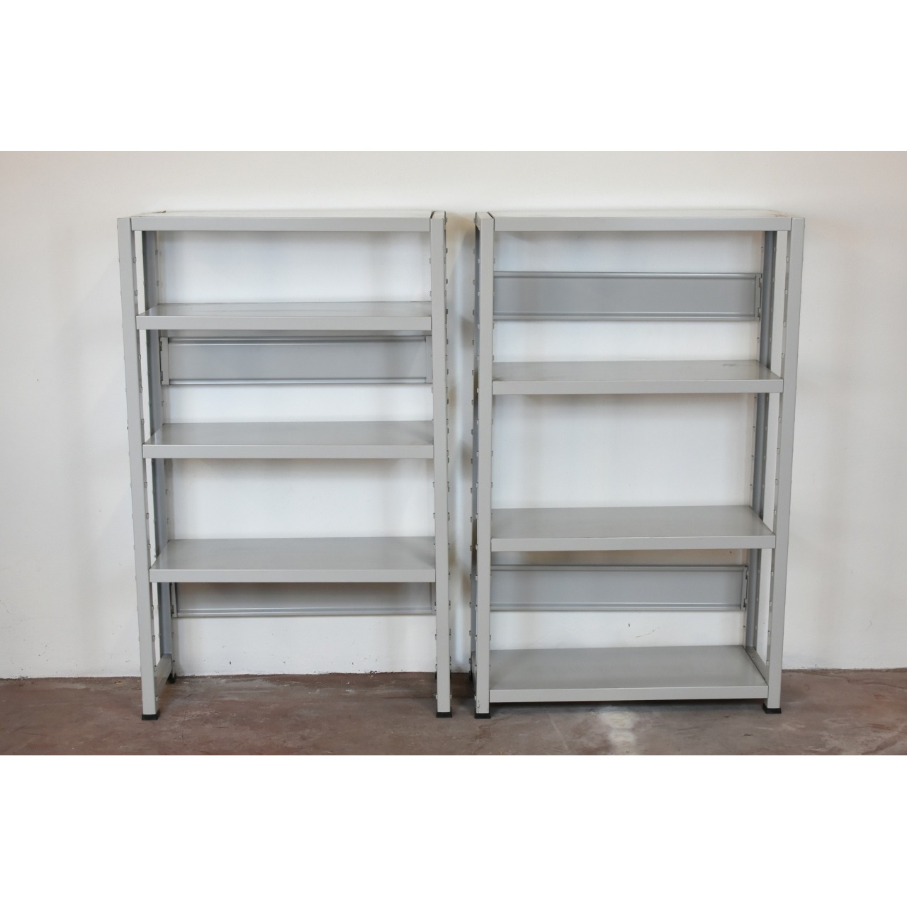 Conjunto de duas estantes metálicas tipo handy.