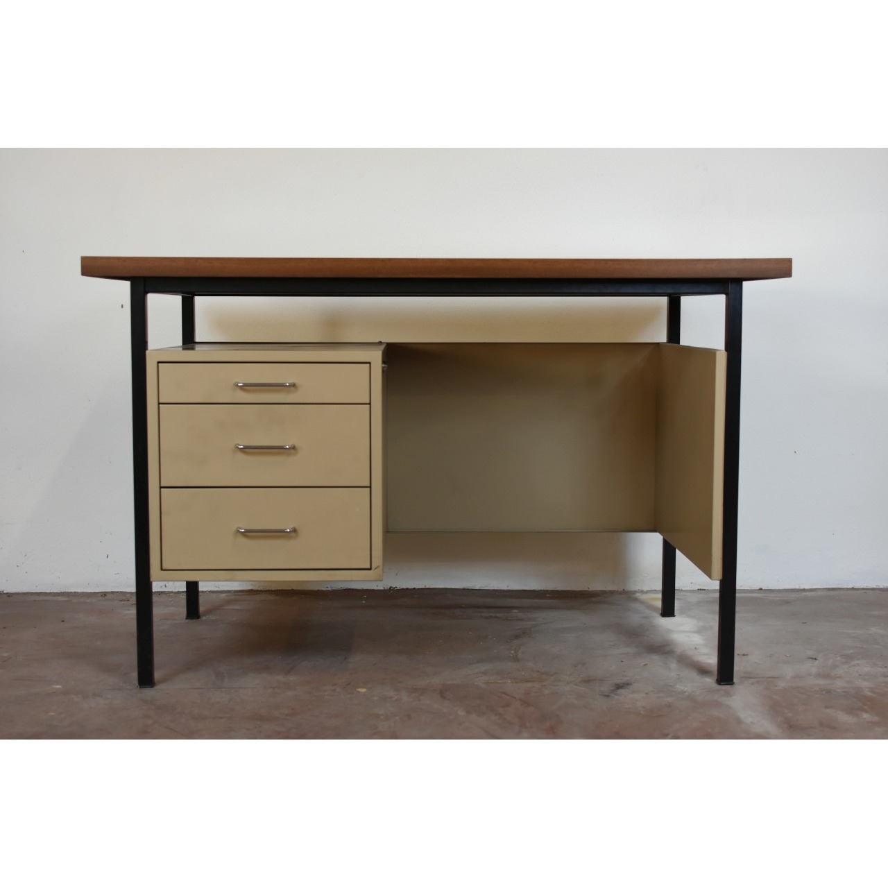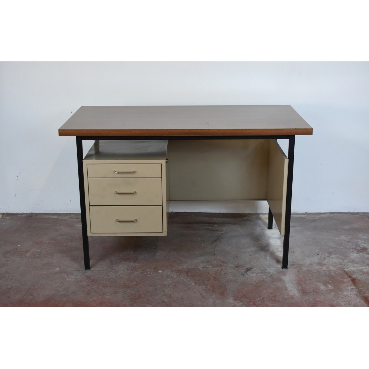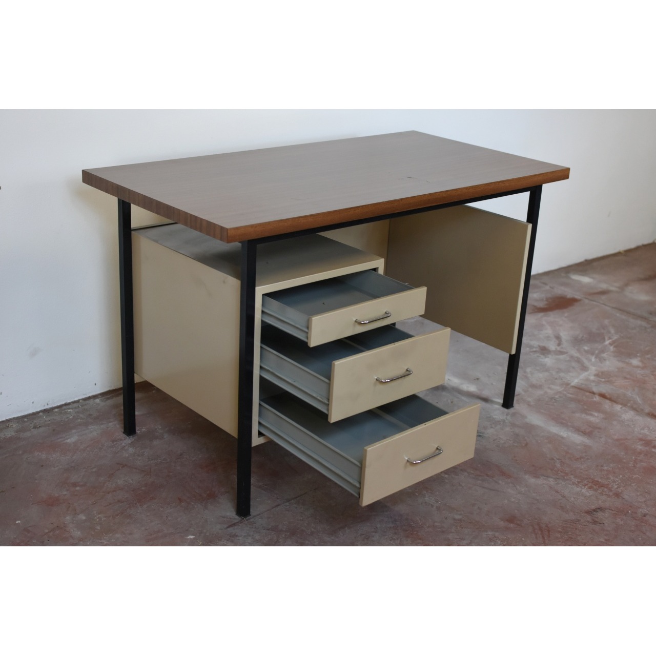 Secretária metálica em bom estado com cinco gavetas sem chave.