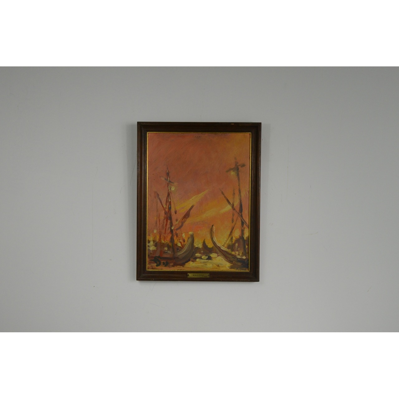 Pintura original a óleo sobre madeira, da autoria de Adelaide de Lima Cruz, artista portuguesa ativa na segunda metade do século XX, reconhecida pelas suas composições de inspiração marítima e pincelada solta de tonalidades quentes.