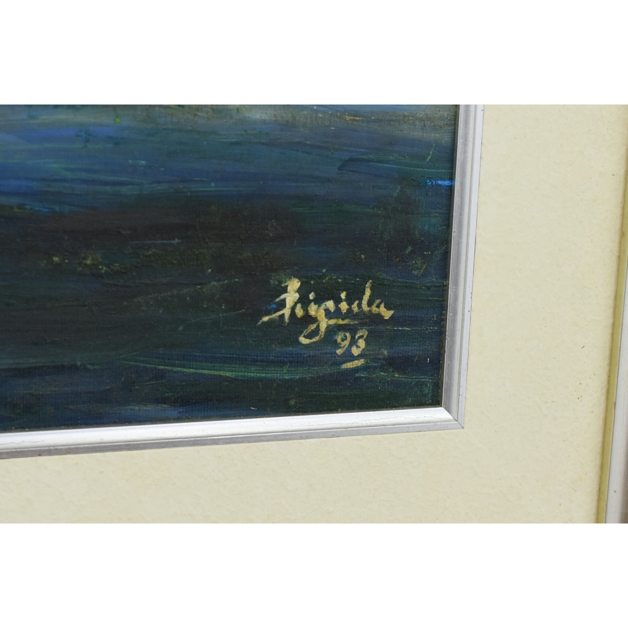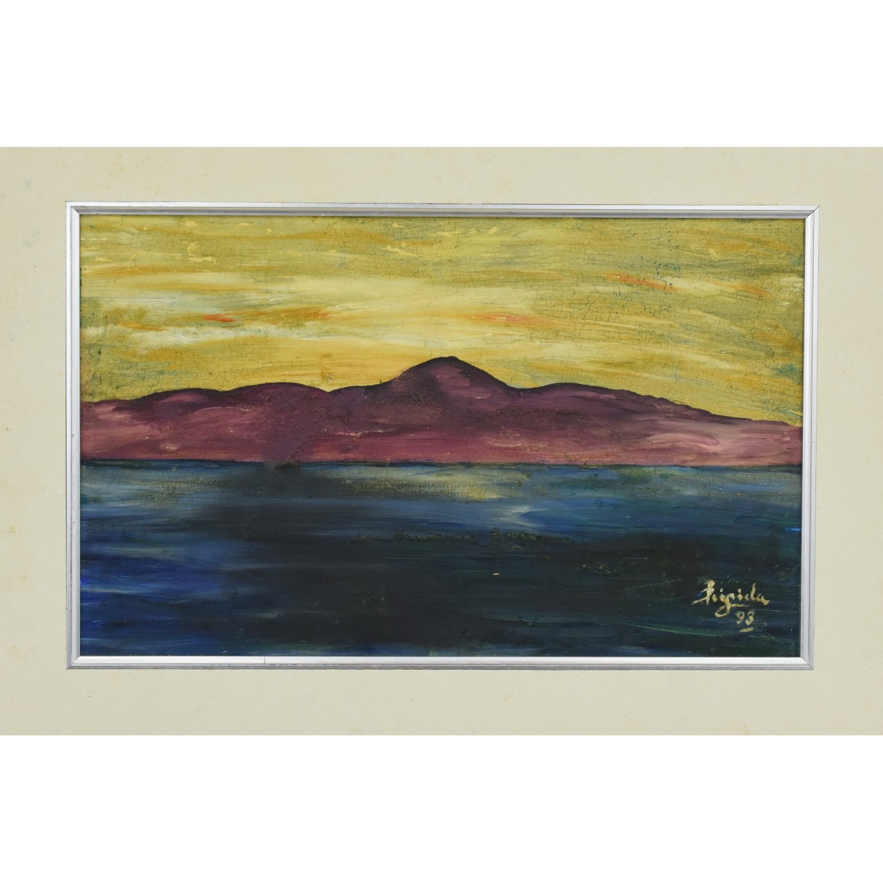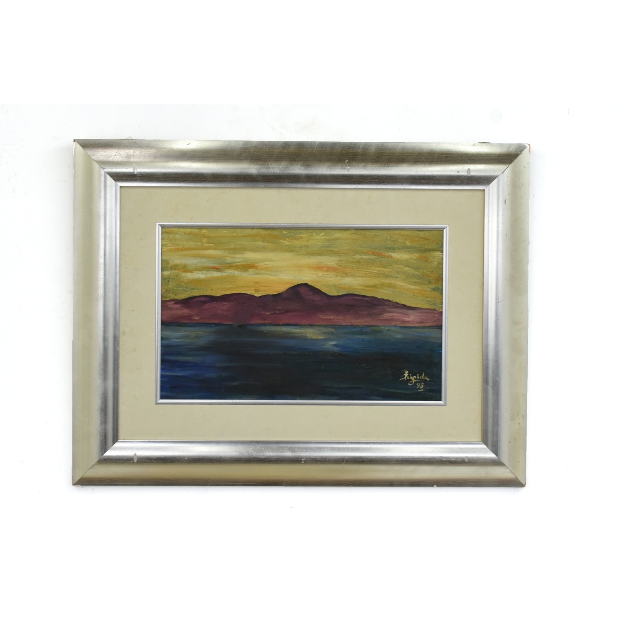 Óleo sobre madeira com tema "Paisagem" assinado Brigida com moldura