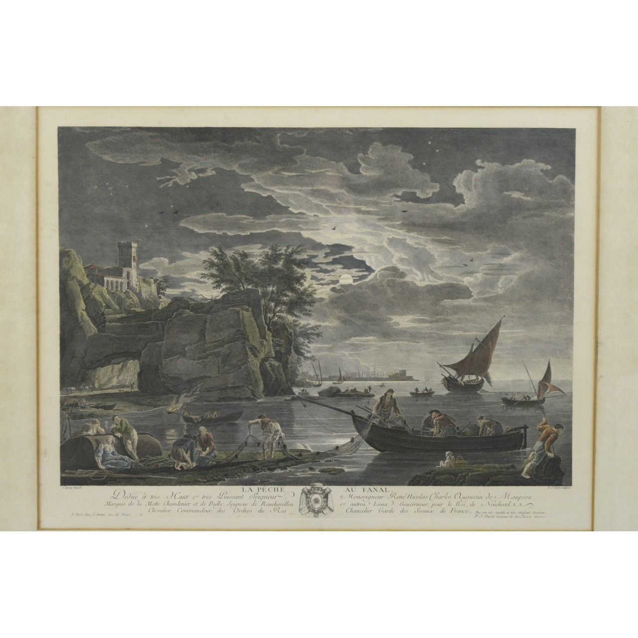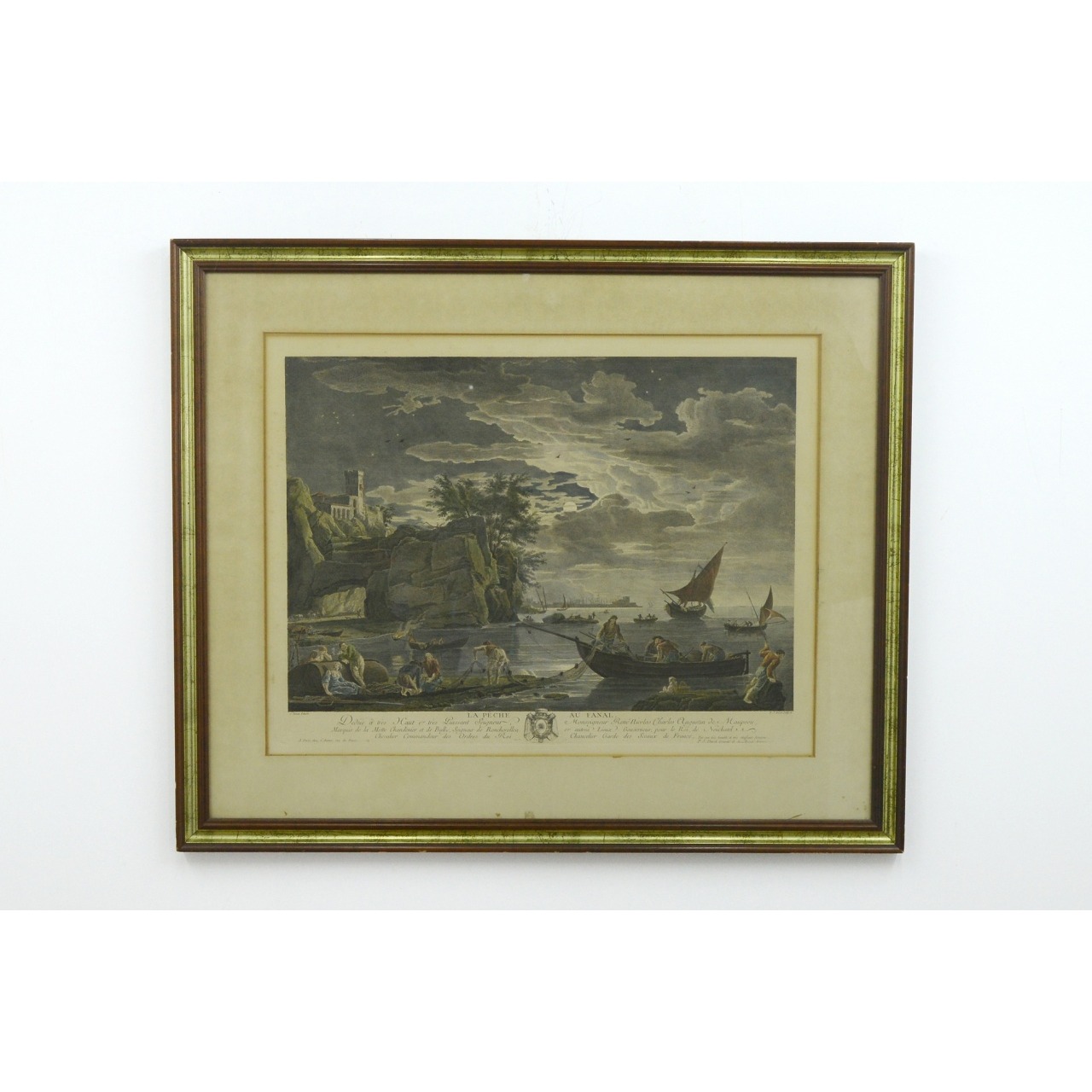 Gravura antiga tema "Pesca" com moldura