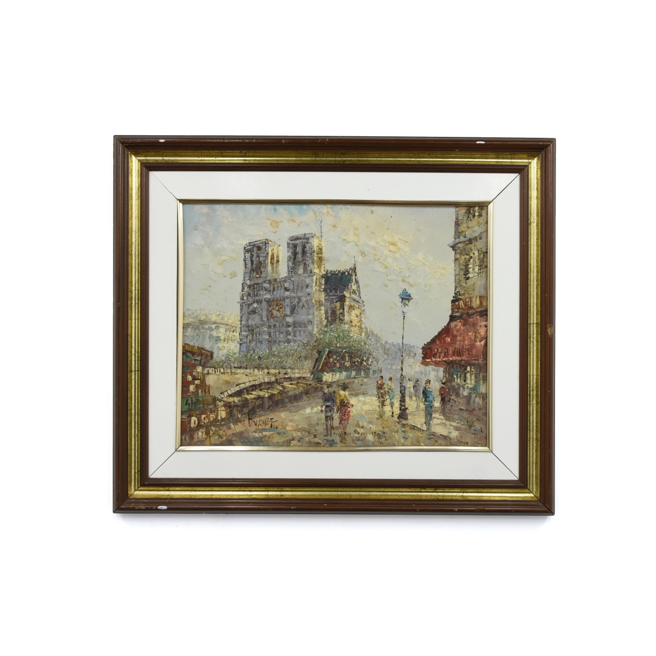 Oleo sobre tela tema "Notre Dame" assinado Burnett com moldura