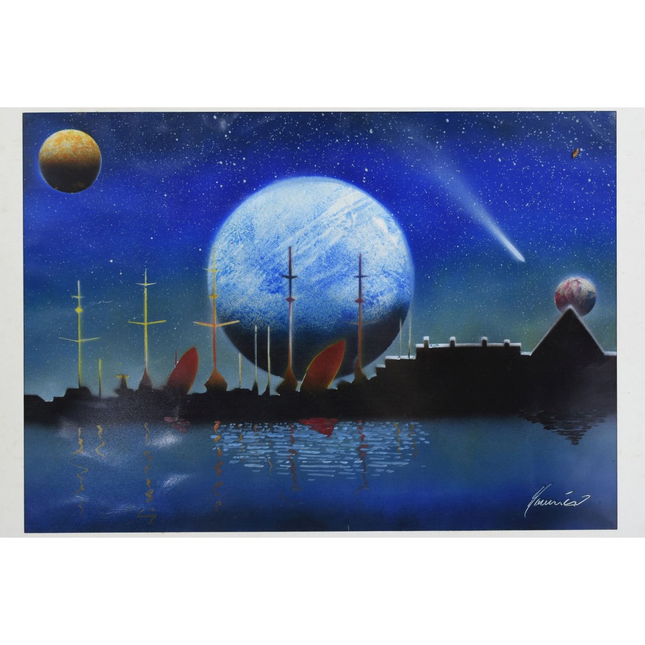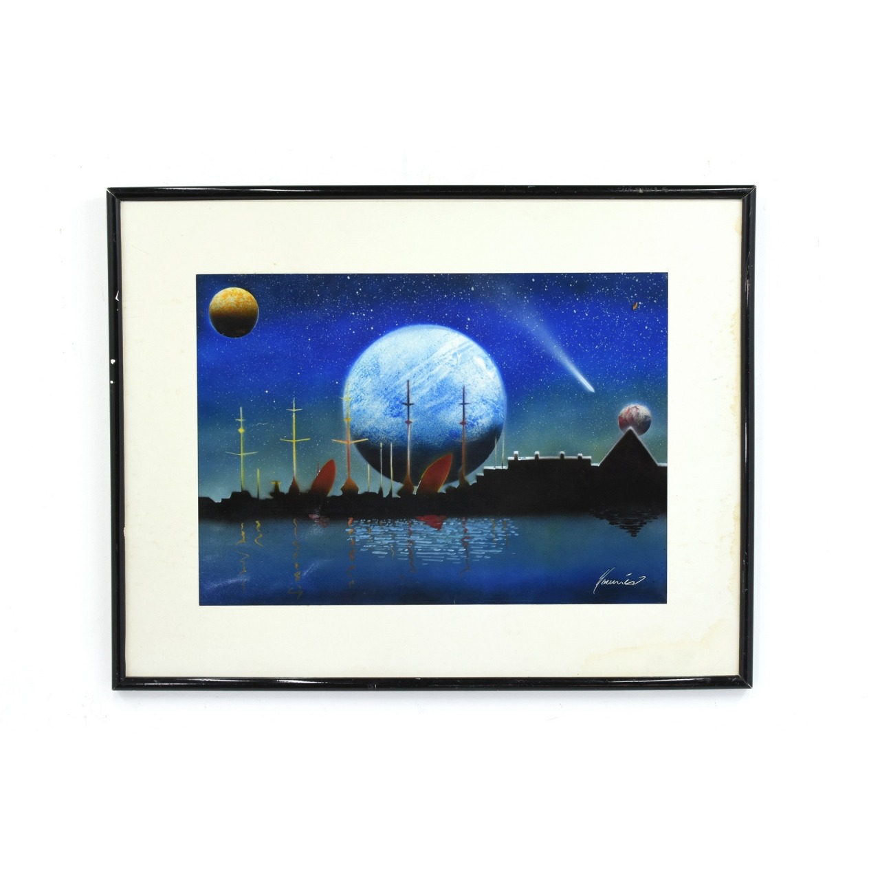 Pintura em spray intervencionada tema : Surrealismo" assinado Mauricio com moldura