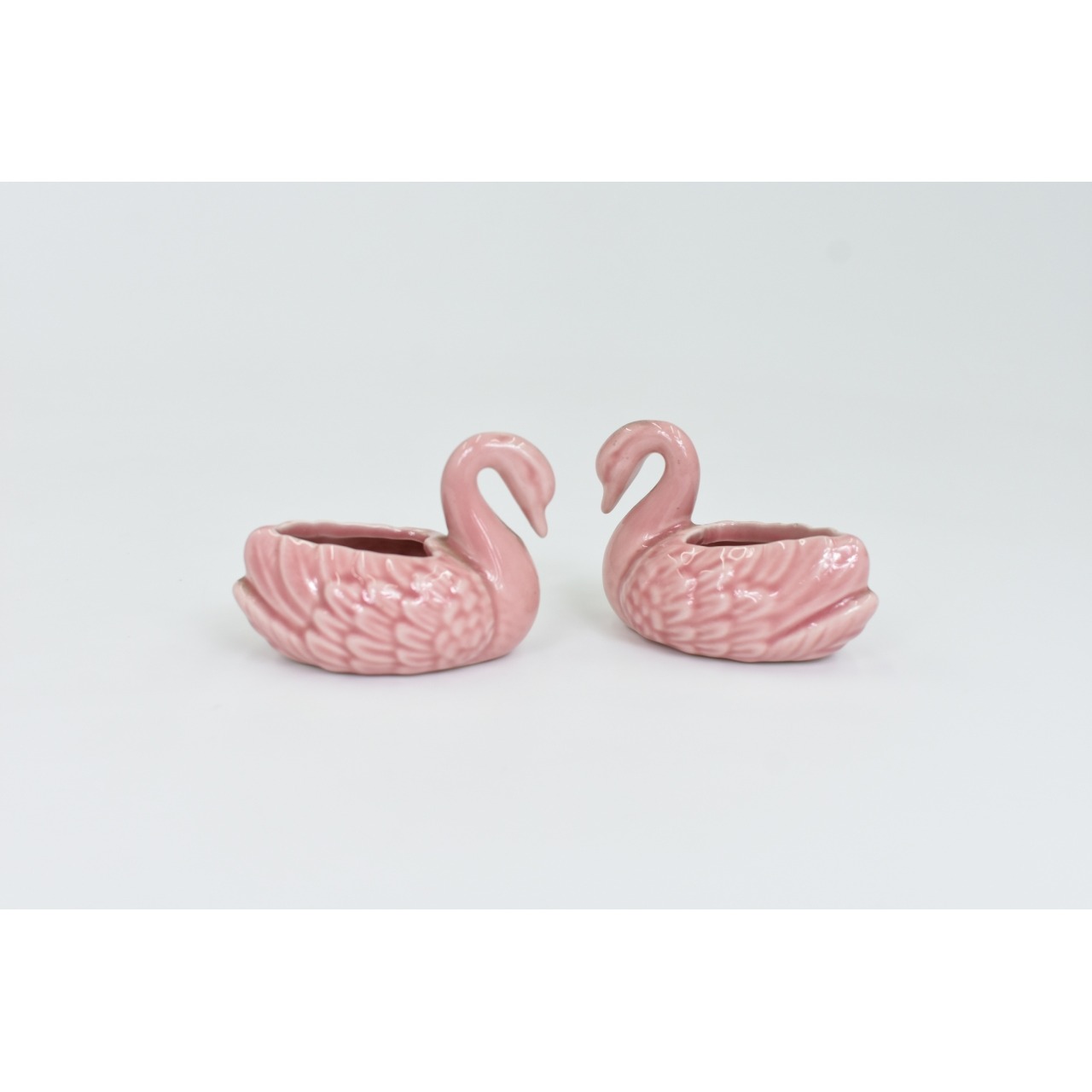 Par Cisnes em porcelana cor de rosa, porta velas