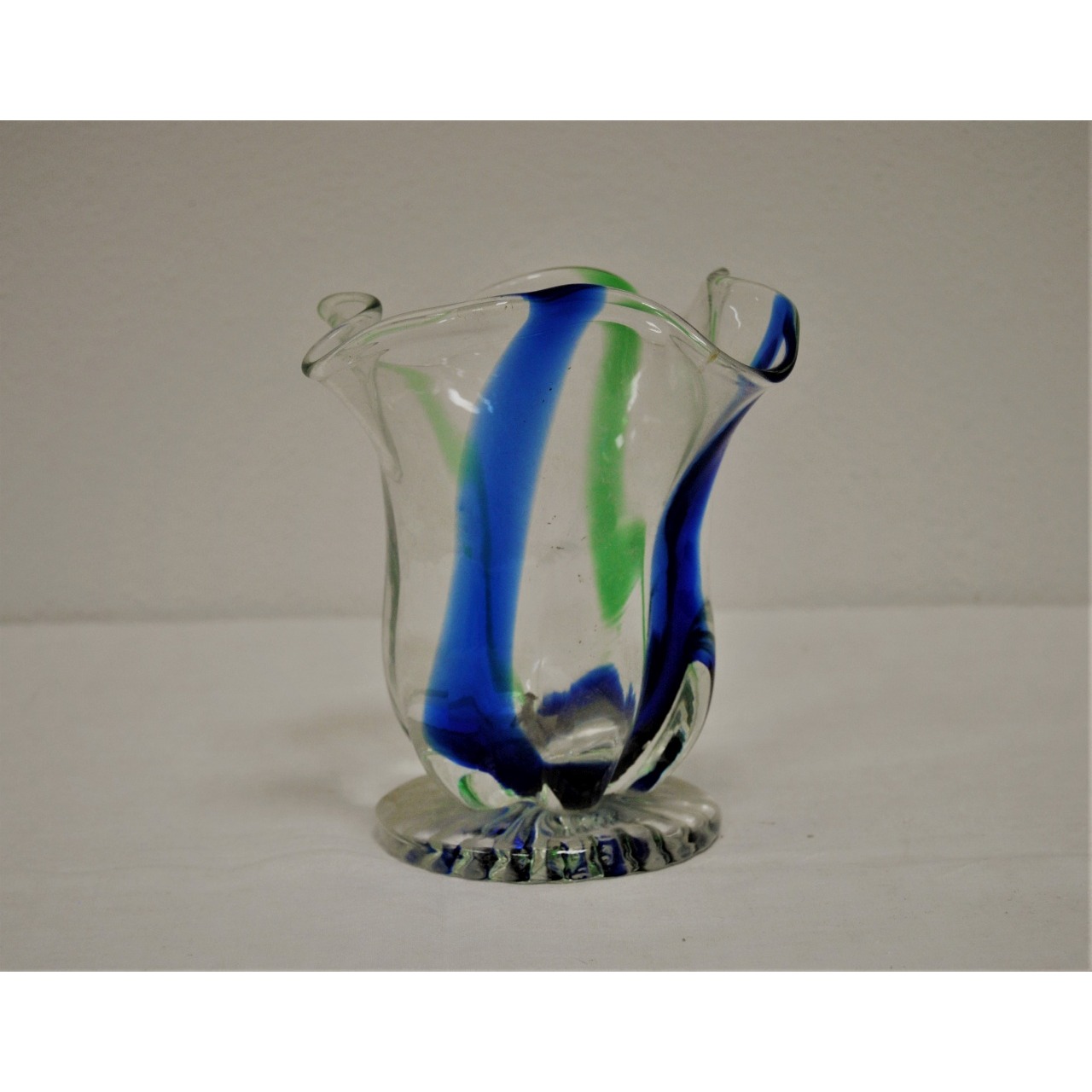Jarra em vidro Studio, com bordo ondulado, estilo free form. Século XX.