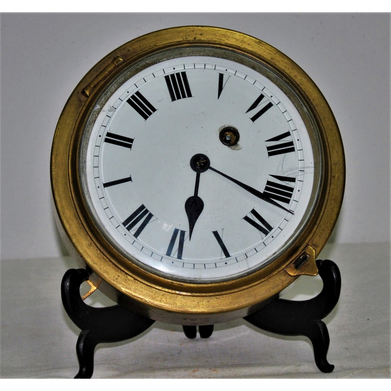 Relógio náutico de parede em bronze, mostrador com numeração romana. Em muito bom estado