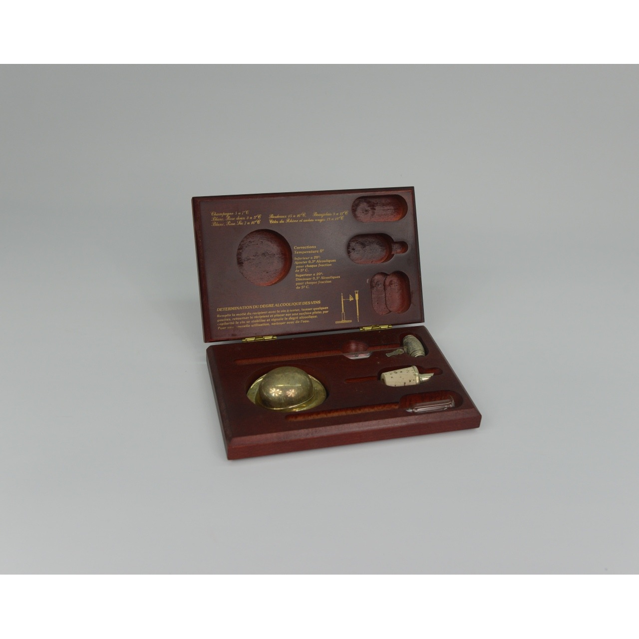 Caixa de madeira com acessórios para vinho